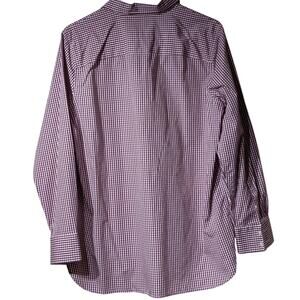 Lands' End Burgundy Wine Check No Iron Supima Popover Long Sleeve Half Button Tunic. No size tag but armpit to armpit measures almost 23" and length is 28". Pristine condition. Half button hidden placket. Another one I bought at the same time does have the size tag with same measurements, and it's a size 16.
