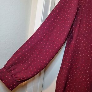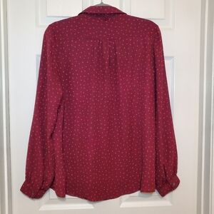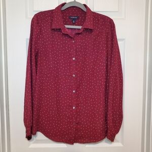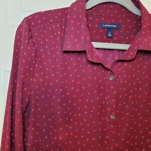 Lands End Burgundy Orange Dotted Abstract Button Up Top 14