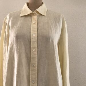 Lands End Butter Yellow Pastel Linen Long Sleeve Casual Summer Coastal Shirt - L