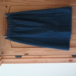 Classic style. A dark wash denim chambray button down midi skirt by Lands End. In excellent condition. Functional buttons. Has pockets. The size 8 is vintage sizing, so I'm marking it XS.