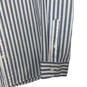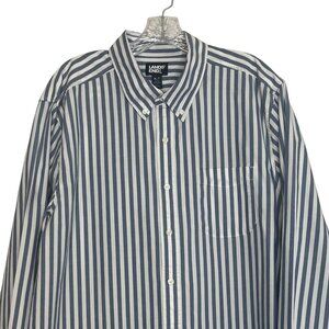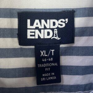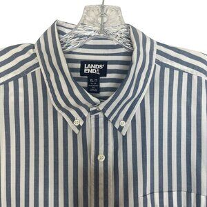 Lands End Button Down Shirt Mens XL Blue White Striped Traditional Fit
