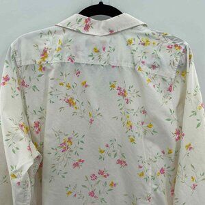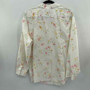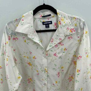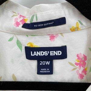 Lands' End Button Front Shirt Womens Plus 20W White Floral Print Supima Cotton