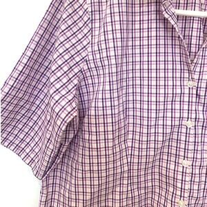 Lands End 16P No Iron Pinpoint Oxford Button Up Short Sleeve Shirt Top Purple Plaid Check