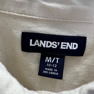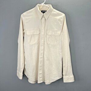 Lands End Button Up Shirt M/T Women Cream Beige Canvas Work Shirt Long Sleeve