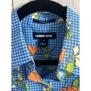 Lands' End Button up, No iron top Blue Standard Size 8 Floral Long Sleeve Shirt