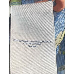 Keywords: Lands' End, women's button-up, blue floral shirt, Supima cotton blouse, collared long sleeve, casual, button up, no iron spring top, machine washable, no iron feature, medium size, regular fit, pre-owned women's clothing, Indonesia made, basic style, floral pattern, women's regular size.