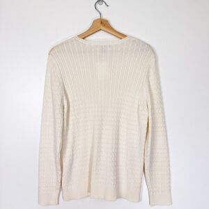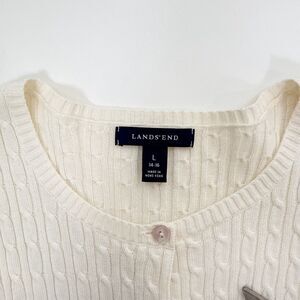 Lands' End Cable Knit Button Front Cardigan Ivory/Cream Large 14-16 100% Cotton