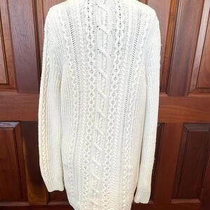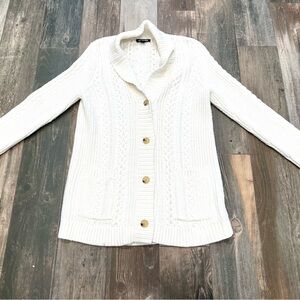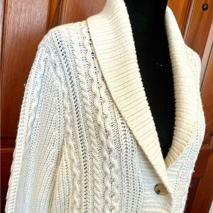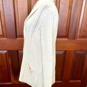 Lands End Cable Knit Cardigan Sweater M 10/12 Shawl Collar Cream/ivory Women