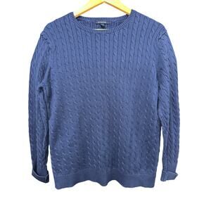 Land’s End Cable Knit Sweater pull over Navy Blue XL Preppy Classic lightweight