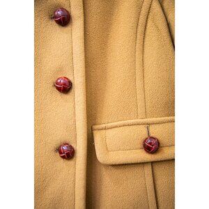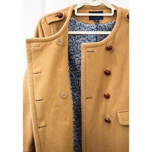 Land's End Camel Collarless Double-breasted Wool Blend Coat, Size 10P