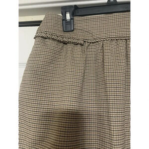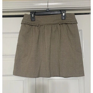 This Lands' End canvas mini skirt is a charming addition to any wardrobe. The skirt features a check / herringbone pattern in shades of brown and is made of polyester fabric texture. The skirt has ruffle accents at the waist and comes in size 0 for a regular fit.
