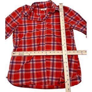 Lands' End Canvas 1963 Women's Small Button Up Blouse Plaid Red Blue