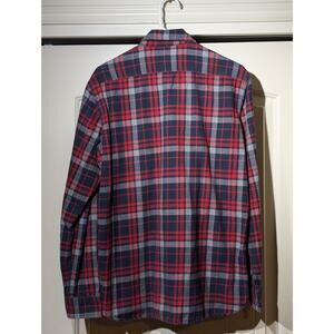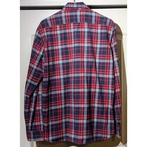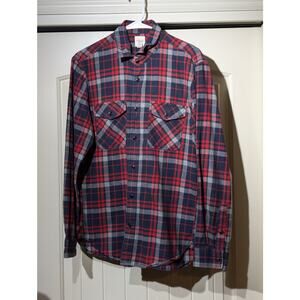 Lands' End Canvas Cotton Red Navy Plaid Pocket Flannel Button Up Shirt Mens M. Pre-owned, this flannel is in excellent condition.