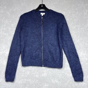 Lands’ End Canvas Sweater Womens Size X-Small Blue Zip Front Mohair Sweater
