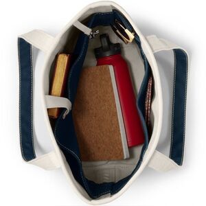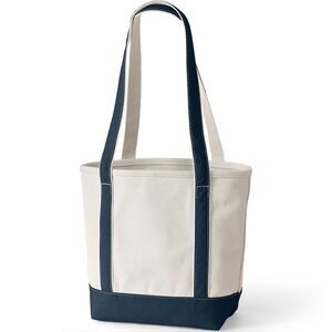 Land's End Canvas Tote Bag Cream Navy Large Long Drop Pockets Personalized Frankie