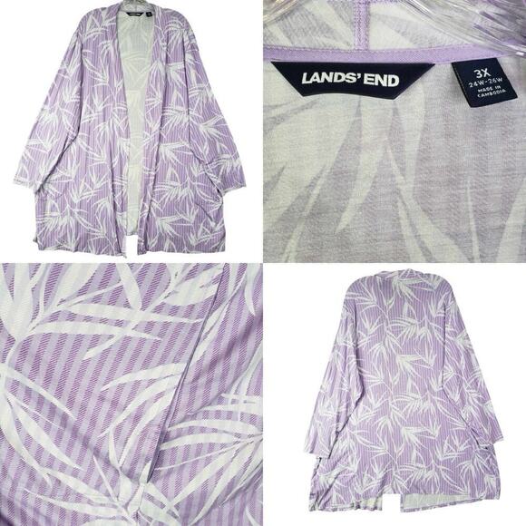 Lands End Cardigan Jersey Knit Rayon Long Sleeve Tropical Womens Plus Size 3X