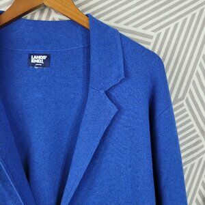 Lands End Cardigan Sweater Jacket Plus Size 3X casual Career blue Knit Pockets