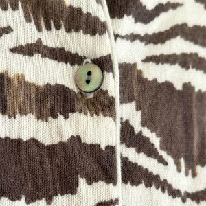 Lands' End Cardigan Sweater Size XL Brown and Cream Animal Print Supima Cotton