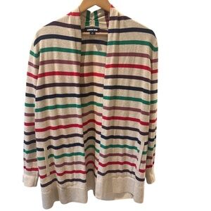 Lands End Cardigan Women M Beige Striped Rainbow Cozy Open Tunic Cardigan