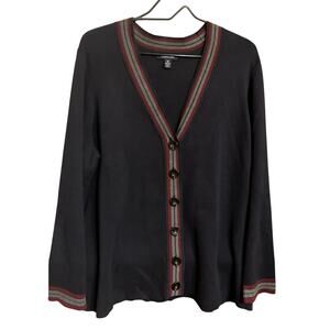 Lands End Cardigan Womens 1X Sweater Navy Blue Red Gray Tipped Fine Gauge Cotton