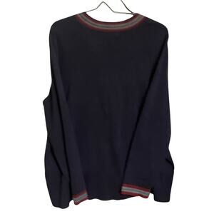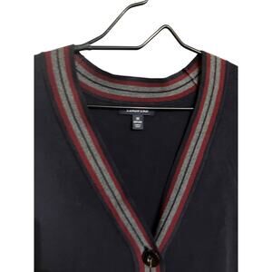 Lands End Womens Cardigan 1X Sweater Navy Blue Red Gray Tipped Fine Gauge Cotton