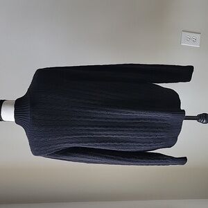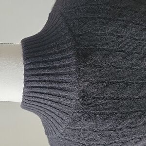 Pre-owned 100% cashmere cable knit sweater is in great condition with no holes, no stains, no snag, with very little piling. Stay cozy and stylish with this elegant black sweater. Perfect for any occasion.