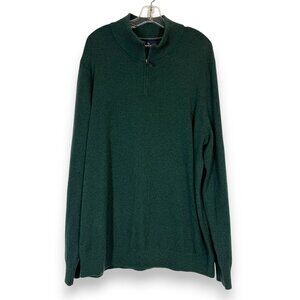 Lands End Cashmere Sweater Forest Green Quarter Zip XL Tall Long Holiday