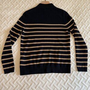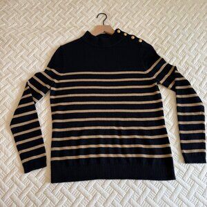 Lands End Cashmere Sweater Womens M Petite Striped Black & Brown Sailor Style