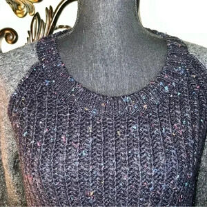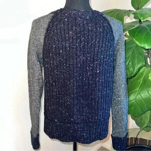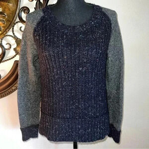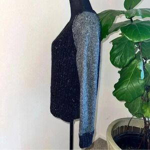Super soft, alpaca blend, oversized pullover sweater, crewneck, cuffed sleeves, navy blue bodice with gray sleeves, high low hem in wonderful condition! Size: Large ***Styled on a size 4 mannequin***