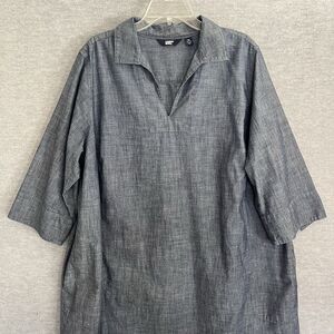 Lands' End Chambray Denim Dress Size 1X Coastal Preppy Resortwear Tunic with Pockets