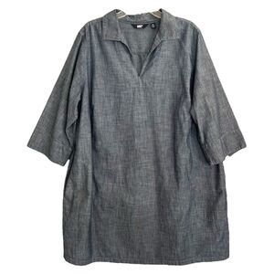 Lands' End Chambray Denim Dress Size 1X Coastal Preppy Resortwear Tunic Pockets