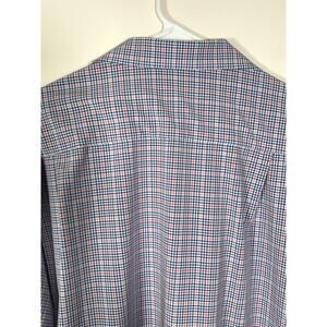 Lands End Shirts Red Blue Checked Polyester Button Up Men's Long Sleeve XL
