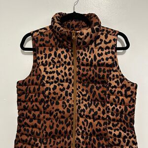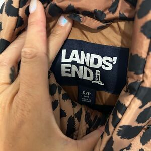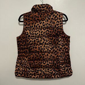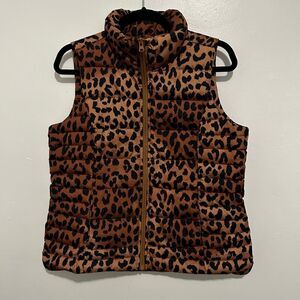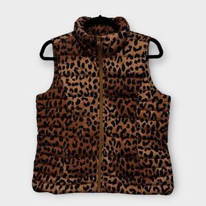 Lands' End Cheetah Animal Print Full Zip Puffer Vest Size S