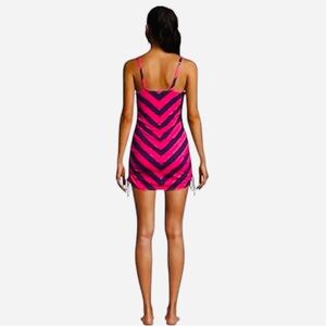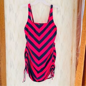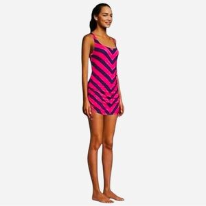 Lands' End Chlorine Resistant Adjustable Swim Dress Deep Sea Navy/hot Pink Sz 12