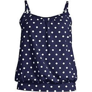Land's End Chlorine Resistant Blouson Tankini Swimsuit Blue Polka Dot