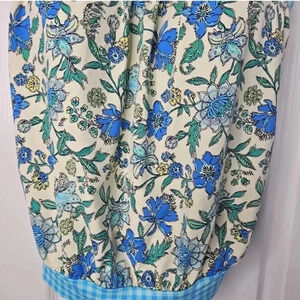 Lands End Chlorine Resistant Blouson Tankini Top Lotus Floral Gingham Size 30DDD