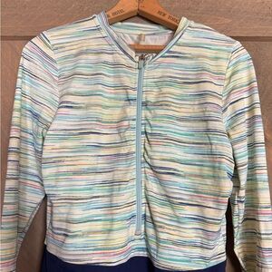 Lands’ End Chlorine Resistant Zip front long sleeve one piece swimsuit Size 14