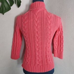 Lands' End Chunky Bright Pink Turtleneck Cable Knit Sweater