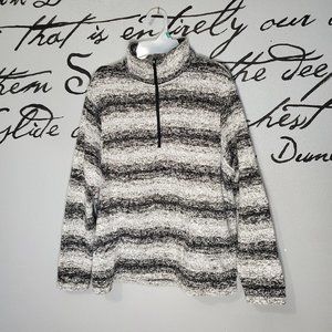 Lands' End Classic Gray Stripe Fleece Half Zip Pull Over, XL