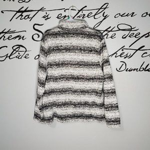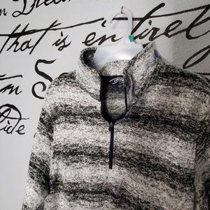 The perfect piece to add to your fall wardrobe. Black and white stripe (blends to grey) half zip pullover sweater. Very warm and cozy inside.