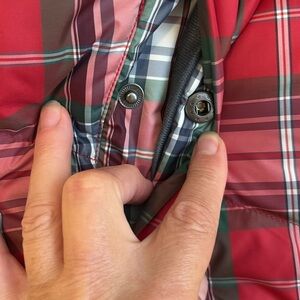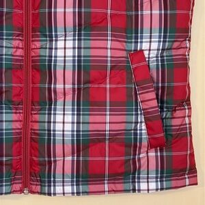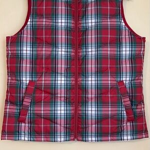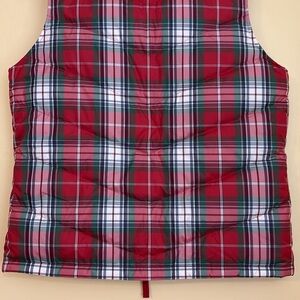 Lands’ End | Classic Red White Green Plaid Zip Front Down Quilted Puffer Vest