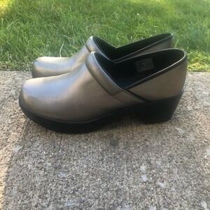 Lands End Clog Mule Heel Metallic Silver Gray Size 10 Slip on #444703