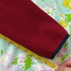 Excellent condition. Colors are a dark red and navy blue first picture is the closest. Plastic snaps are present and working, elastic in cuffs and around the bottom all intact and stretchy. It’s still very soft inside and out.