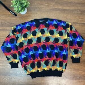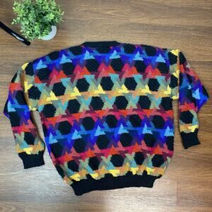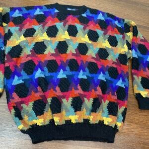 Lands End Colorful Angora Wool Crew Neck Knit Sweater XL