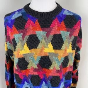 Lands End Colorful Angora Wool Crew Neck Sweater Medium