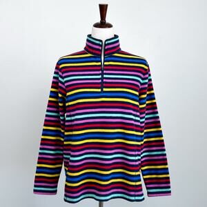 Size Medium Lands' End pullover. Quarter-zip neckline. Fun, colorful stripes on soft fleece fabric. Great condition!