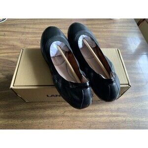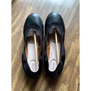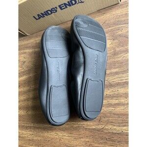 Lands End Comfort Slip On Leather Ballet Flats Black Women Size 9.5 B