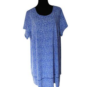 Land's End Comfy Pullover Dress Blue White Paisley 2x EUC