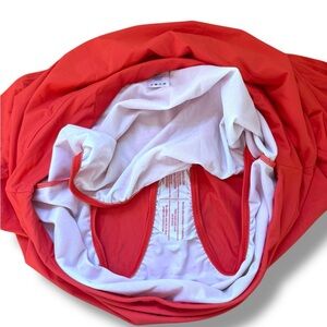 Chic red and white skort. Ideal for everyday wear. Shorter skirt flatters and lengthens (approximately 12" long) Full coverage in back Attached panty for comfort and coverage
