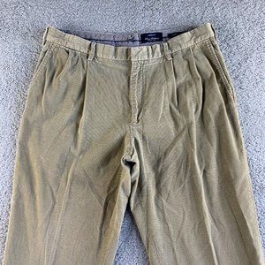 Lands' End Corduroy Pants Mens 37 Khaki Chino Traditional Fit Pleated Casual